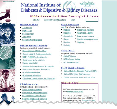 Launched in 2000, this version of the National Institute of Diabetes, Digestive, and Kidney Diseases website provided access to information for health professionals, patients, and the general public.